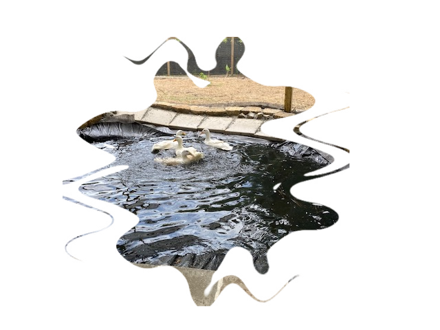coops, a free-range chicken tractor, and an enclosed duck pond. We